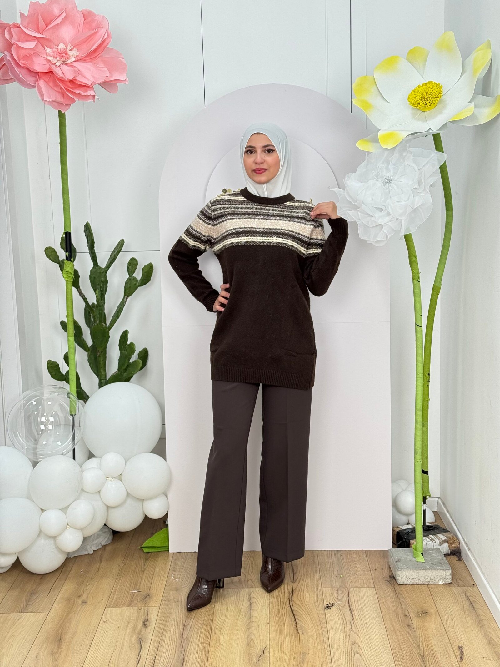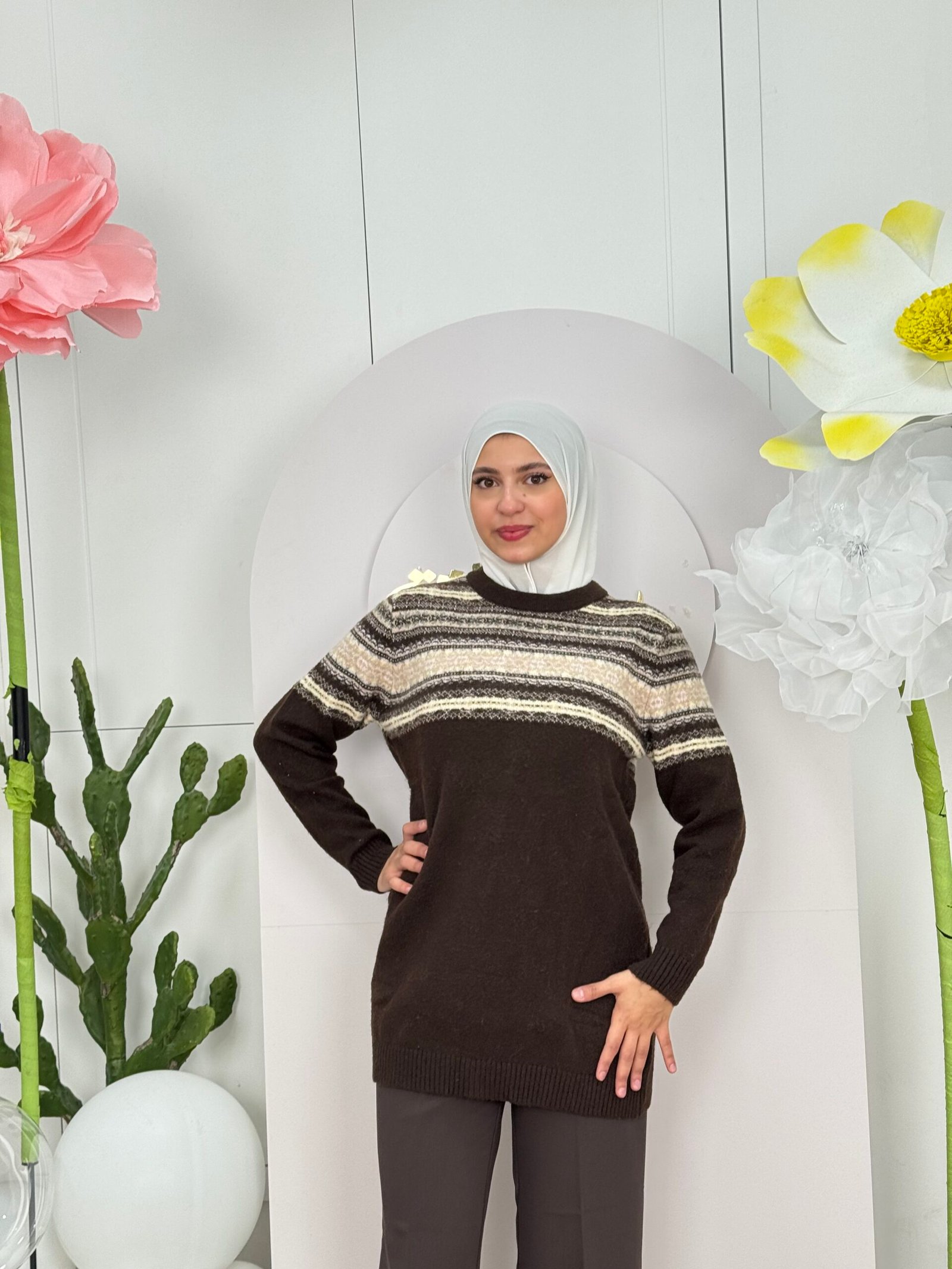 تم تصميم هذه البلوزة بعناية فائقة باستخدام أجود أنواع الصوف لتوفر لك الدفء والراحة طوال اليوم. التصميم يمنحها مظهرًا عصريًا يعزز جمالك الطبيعي ويلائم جميع الفصول.